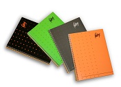 A5 40/48/50/60/80 sheets, 5x5mm squares / 7x7mm squares / lines, spiral sided or on top available with or without perforation, with or without holes, designs: Supreme, Bubbles, Premium, VIP with PP covers.